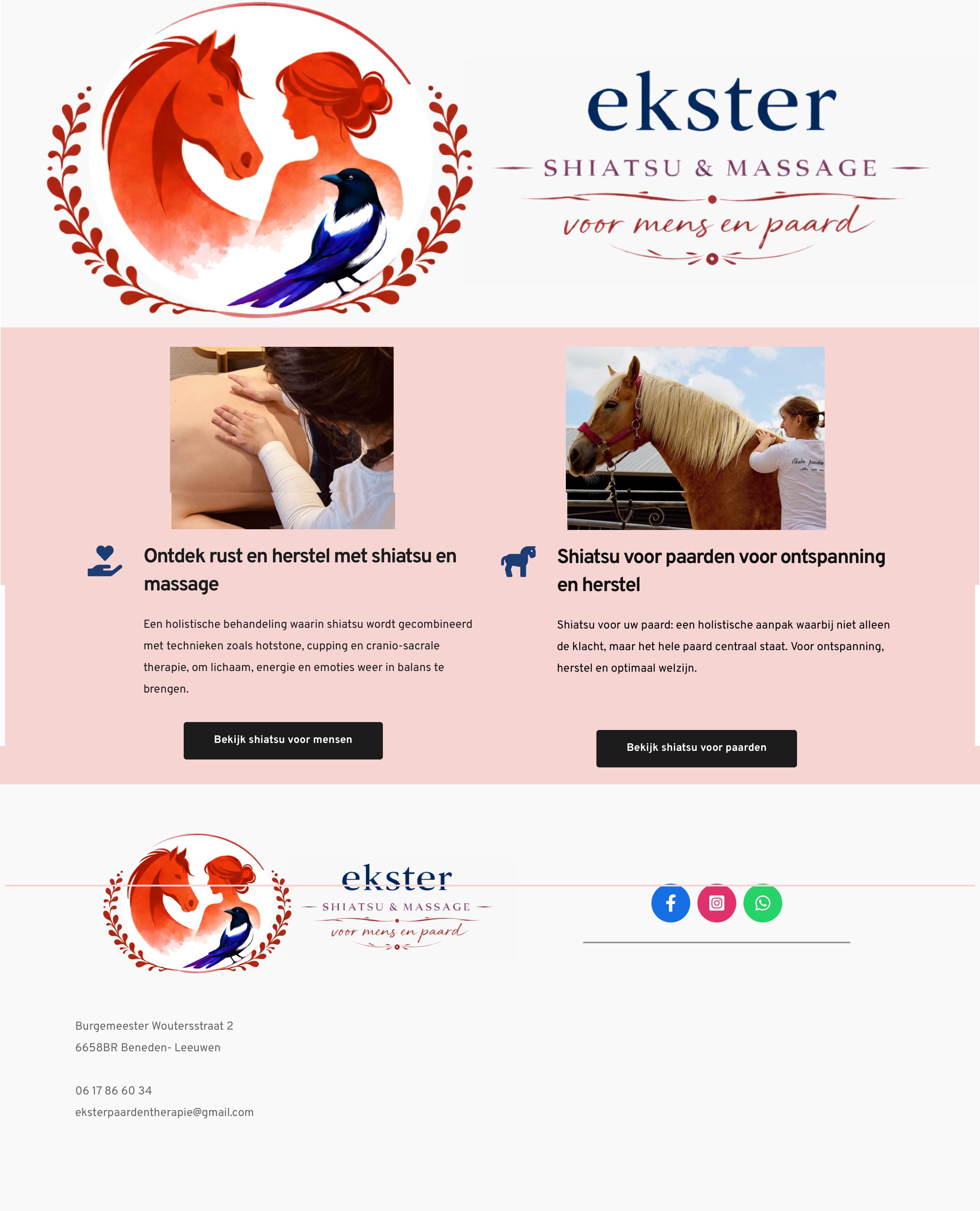Shiatsu is een Japanse behandelmethode gericht op het herstellen van balans in lichaam en energie. Shiatsu voor mens en paard helpt bij spanning, stress en lichamelijke klachten. Door gerichte drukpunten en rustige technieken wordt het lichaamseigen zelfherstellend vermogen ondersteund. Iedere behandeling wordt afgestemd op wat op dat moment nodig is.